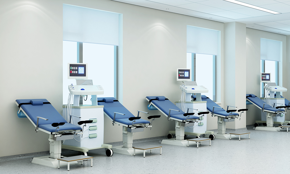 血液透析室功能:利用血液透析的方式,对因相关疾病导致慢性肾功能衰竭或急性肾功能竭的患者进行肾脏替代治疗的场所。通过血液透析治疗达到清除体内代谢废物,排出体内多余的水分。纠正电解质和酸碱失衡,部分或完全恢复肾功能。